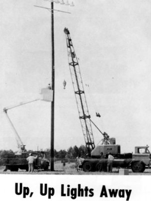“A lighting system has just been installed which consists of 160 fixtures each containing a 1,500 watt bulb. Six poles each house 16 lights and two poles house 32 lights,” the story reported.