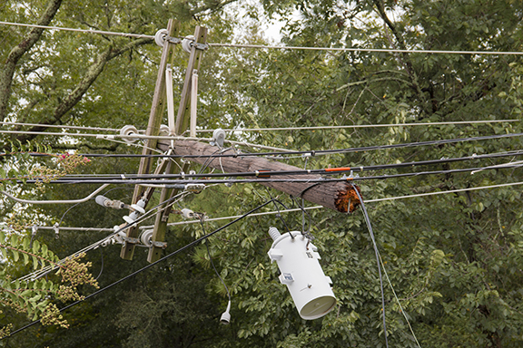 This scene is happening time and time again on Walton EMC’s electric grid because of Hurricane Irma. Replacing a pole with this much hardware is a resource- and time-consuming repair. |