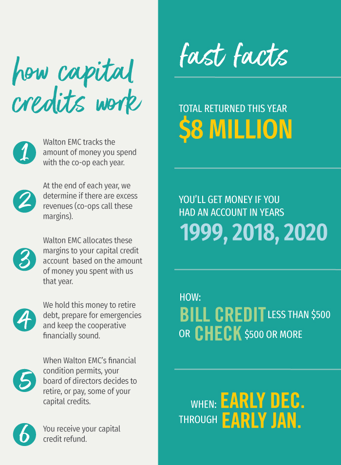 Q: Why does Walton EMC ask for a forwarding address if I move off co-op lines? A: That’s a timely question since this issue of the Realite includes an announcement about this year’s capital credits distribution. As a cooperative, Walton EMC operates on a not-for-profit basis. Any excess revenues, known as capital credits, are refunded […]