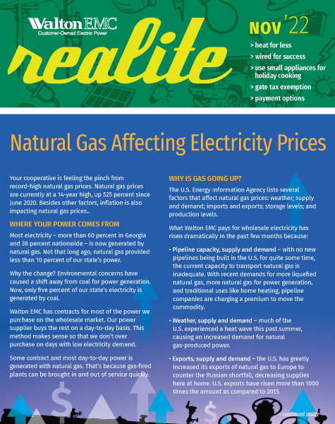 Your cooperative is feeling the pinch from record-high natural gas prices. Natural gas prices are currently at a 14-year high, up 525 percent since June 2020. Besides other factors, inflation is also impacting natural gas prices. WHERE YOUR POWER COMES FROM Most electricity – more than 60 percent in Georgia and 38 percent nationwide – […]